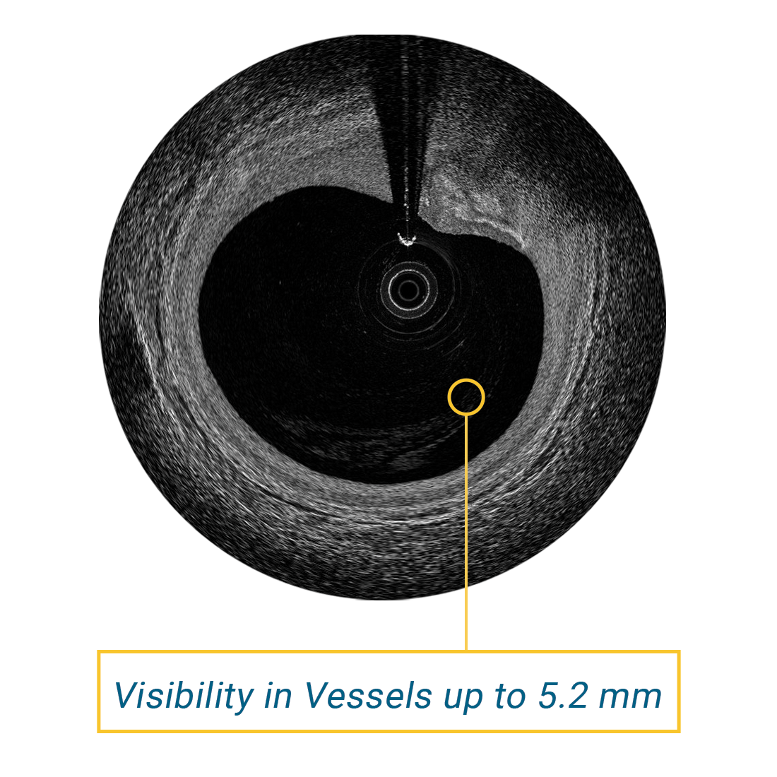 Engineered to visualize the EEL, detect full calcium thickness, and confidently image large vessels including left main.